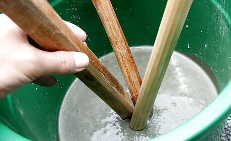 Allow the concrete to set. This can take up to 20 hours (see the packaging instructions). The concrete must be completely set before you remove the stool structure from the bucket.