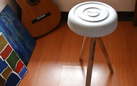 Add the stool legs. Strategically place the legs inside the concrete, making sure you add the legs while the concrete is still wet and can absorb the legs. If necessary, hold the legs in place while the concrete sets. Check that the leg ends are all aligned evenly, to avoid a wobbly stool!