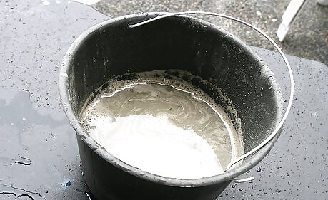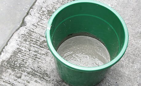 Fill a large pitcher with water to mix with the concrete. It’s better to slowly add and mix water into concrete, so if hosing in the water, use a carefully controlled nozzle to ensure a slow addition of water rather than a fierce blast.