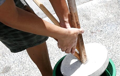 Slowly pour the water into the dry concrete. As you pour the water into the concrete, use a sturdy stick or paint stirrer to combine the mixture into a smooth paste. Also follow any instructions provided on the concrete packaging.