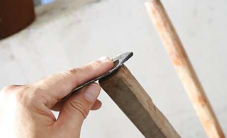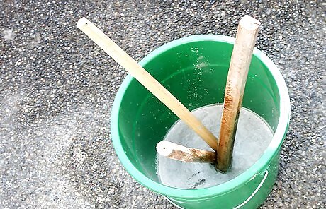 Use the garden hoe bottom to smooth and level the bottom of the stool, if necessary. The concrete will most likely be smoothed already but use the tool if needed.