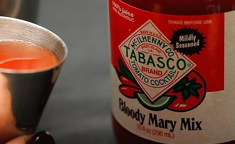 Measure and pour the light rum, beef bouillon, Tabasco sauce, Worcestershire sauce, and lemon juice into the shaker.