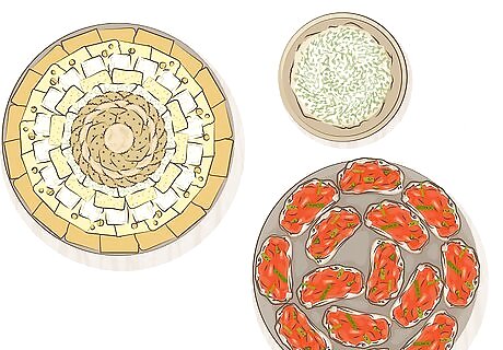Pick 1-3 appetizer options so you don’t stuff your guests before dinner. If you prepare several appetizers for you and your guests to munch on as you finish cooking, no one will have room for the main course! To prevent this, go with a couple snacks as a warm-up for what’s to come. If you are serving 2-4 people, 1-2 appetizers are plenty. If you have more than 4 guests, consider a third option if you’d like.