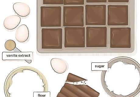 Bake fudge brownies for a decadent, chocolatey treat. Stir 2 cups (473 g) of white sugar and 2 tbsp (30 g) of melted chocolate in a medium mixing bowl. Then, add 4 eggs, 1 tsp (5 mL) of vanilla extract, and 1 cup (237 g) of all-purpose flour. Mix all of your ingredients together, pour the brownie batter into a baking pan, and cook them for 30-35 minutes at 350 °F (177 °C). If you’d like, add 2 cups (473 g) of chopped walnuts to your batter before you bake it for a crunchy touch. You can also drizzle melted chocolate over the brownies as a garnish.