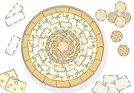 Set up a cheese and cracker tray for a simple yet scrumptious snack. Grab a serving platter and place slices of cheese on top to make your display. Include options such as American, Swiss, pepper jack, brie, and bleu cheese, for instance. Then, spread 2-4 types of crackers across the tray as well. On average, serve 2-4 tbsp (30-60 g) of cheese per person. For example, great cheese and cracker pairings include extra sharp cheddar and club crackers, brie and crostini, and gouda and multigrain.