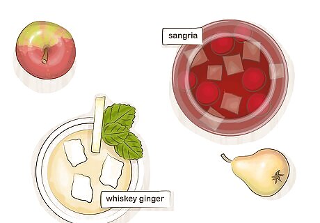 Pick 1-2 alcoholic options to serve if your guests are over 21. You can keep it simple and pick a red and white bottle of wine, or choose a cocktail or two to feature for dinner. For instance, make a whiskey ginger by adding 1-2 shots to a glass and filling the rest with ginger ale. Another cocktail idea includes mixing 1 cup (237 mL) of sliced apples, oranges, and grapes with a bottle of red wine to make your own Sangria. Search online to find additional cocktail ideas. You can also grab a 6-pack for an effortless option.