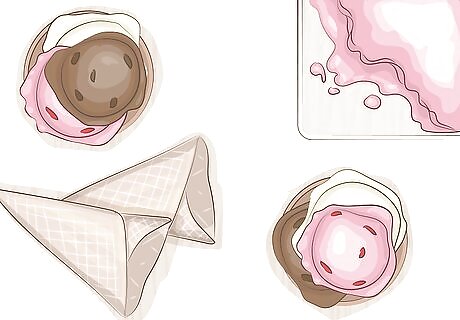 Scoop ice cream or sorbet into cones for an easy summertime treat. Purchase ice cream or sorbet from the grocery store or a local creamery, and offer it shortly after dinner for a simple dessert option. Pick 1-3 flavors so your guests have a few options to choose from. For instance, choose a chocolate ice cream and a raspberry sorbet. Include waffle cones, sprinkles, cherries, and chocolate syrup to make your own sundaes.