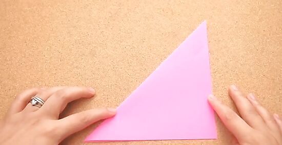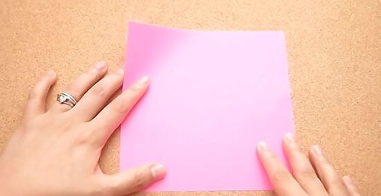 Get a piece of origami paper or cut a piece of printer or construction paper into a 5 inch by 5 inch (13cm) square. Lay your paper down on a flat surface. If you have two-colored paper, the side facing down will be the outside of the rabbit.