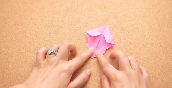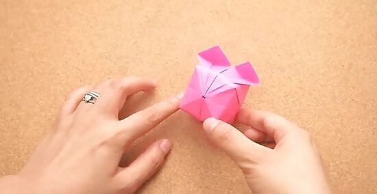 Push the paper down in the middle, and pull the sides up a little so they're popping out a little. Make the sides touch, and push down on the top.