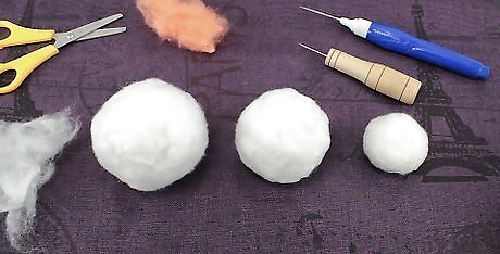 Assemble the balls to make a snowman. Place the medium-sized ball on top of the large ball. Join the balls by poking your needle through them at an angle, all the way around the seam. Repeat this step to attach the smaller ball to the top of the medium-sized ball.