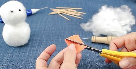 Cut a triangle out of orange craft felt to make the nose. How big or small the nose is, is up to you. It is better to make it too long than too short, because you can always cut it down. Try to keep the nose proportionate to the snowman, however.