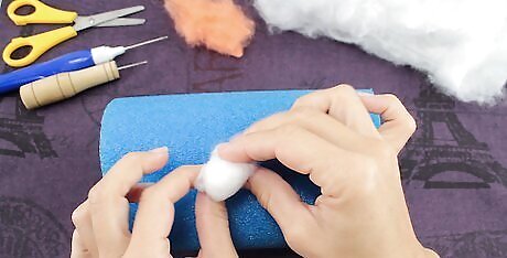 Roll the wool roving into a small ball. Place it against a rubber foam mat or a special mat meant for needle felting. If you are using your own foam rubber pad, make sure that it is around 2 inches (5.08 centimeters) thick.
