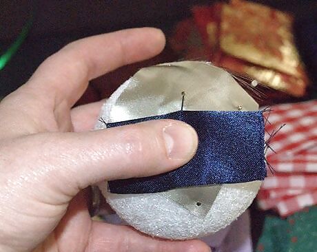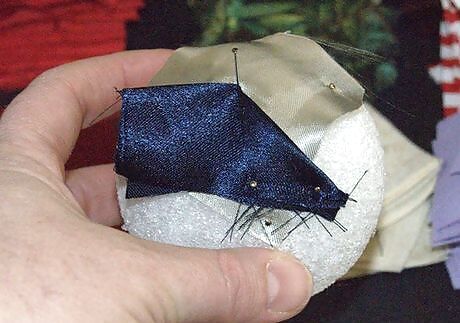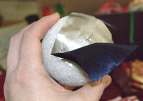 Place a square or rectangle of fabric on the ball and pin it in place by its corners.