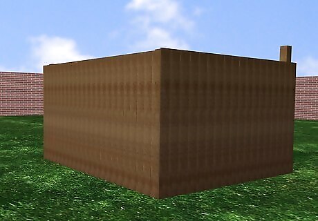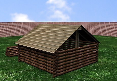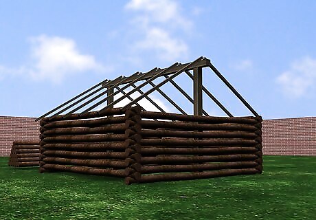 Stack the logs as high as you want the walls to be. Keep the wall vertically aligned ("plumb") -- not leaning inward or outward. This is accomplished by cutting the logs to matching/uniform lengths, notching, sizing and straightness. Repeatedly hang several strings on nails with pointed weights called "plumb-bobs" from the top of each wall downward as you go -- so the string clears the wall a little -- to check the vertical plumb (or use a carpenter's "level") as you go. If the structure is not plumb, it might collapse inward or outward in an out-of-plumb area (non-vertical). Gravity works for you very much if the structure's wall and posts are plumb, but works against you if not.Make a Log Cabin for Kids Step 4.jpg