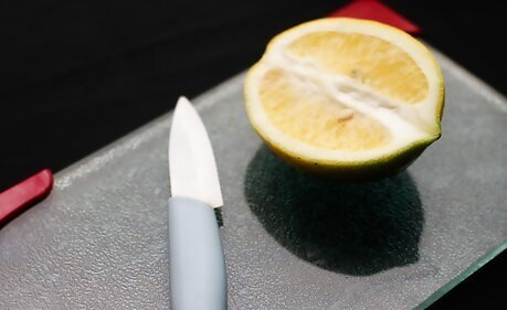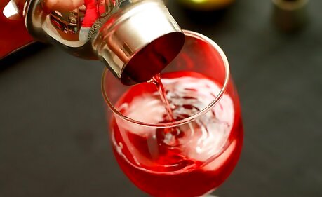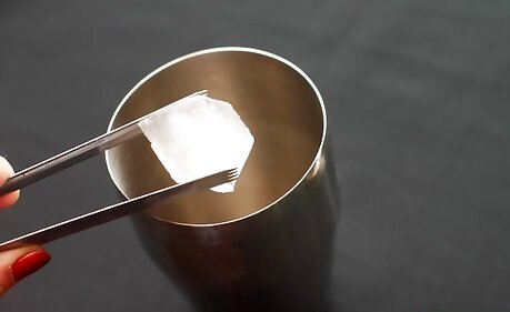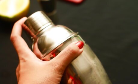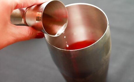 Use a knife to cut the lemon in half. Use one half of the lemon and squeeze the juice out with either a juice squeezer or fork. Pour the lemon juice in the cocktail shaker.