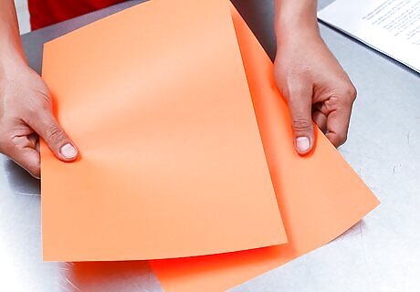 Get two sheets of paper. For all parts of the design, you want the tomahawk to have some heft, especially if you plan to throw it at targets. For this reason, construction paper or even a fairly flexible cardstock will work best, but you can use plain 8.5”x11” printer paper if you use two or even three sheets of paper.