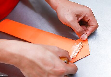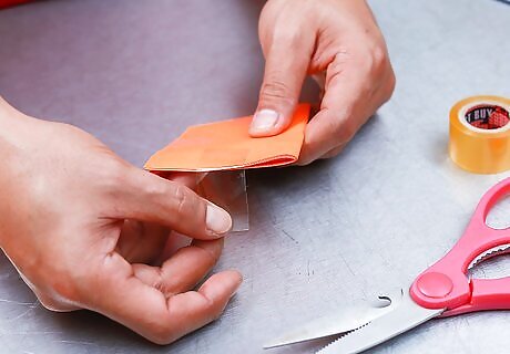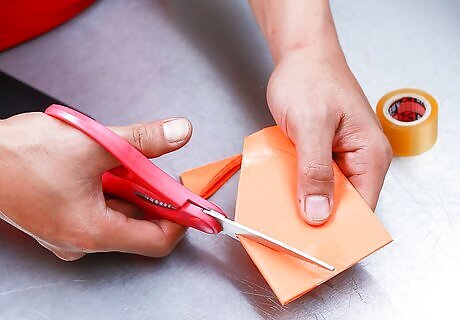 Tape the head to keep the pages folded. In order to stop the paper from unfolding, place more of the Scotch or packing tape over the edges of the paper on the three open sides.