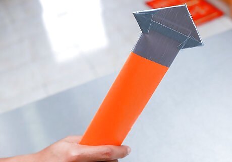 Flatten the tube. Since the paper design doesn’t have the weight and heft to rotate end over end very well when you throw it, you can flatten the handle to help make the shape a bit more aerodynamic. Simply set the tube down flat on your work surface, squish it down, and crease the flattened shape.
