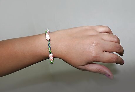 Tie the two sides together. Make sure you are able to slip your hand through the bracelet; as you tie, check that it fits. Enjoy your new bracelet!