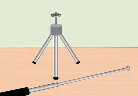 Explore flagpole alternatives. A flagpole is considered the standard option because it's adjustable and meant to hold something on the other side. However, you can tape a tripod to a number of objects, provided they have the length needed to make a selfie with. For instances, you can remove the parasol from an umbrella and replace it with the tripod. Plexiglass poles are good, as you can drill directly into the top and secure a screw to the opening at the bottom of the tripod.