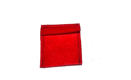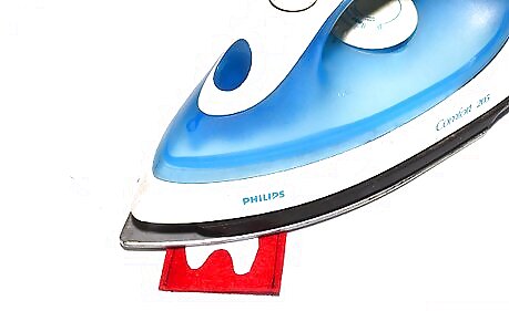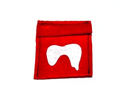 Iron the felt tooth to the front of the pouch, just below the flap. If you didn't have any fusible webbing, you glue the tooth on using fabric glue or hot glue. Avoid using too much glue, of the glue will soak through the felt.