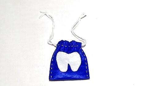 Cut a 2½ by 6-inch (6.35 by 15.24 rectangle) out of felt. This will make the body of your pouch. It can be any color you want, except for white. You will be adding a white tooth shape on top; if the pouch is white, the tooth won't show up!