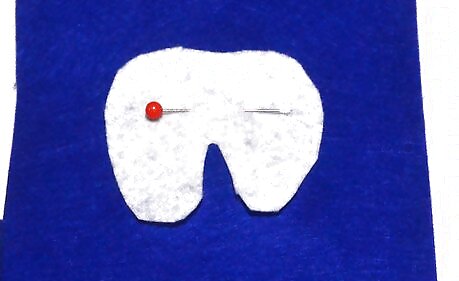 Cut a tooth shape out of the white felt. Draw a tooth shape on the back of the felt, where the webbing is. It need to be about 2 by 2 inches (5.08 by 5.08 centimeters). Cut the tooth out when you are done.