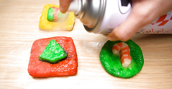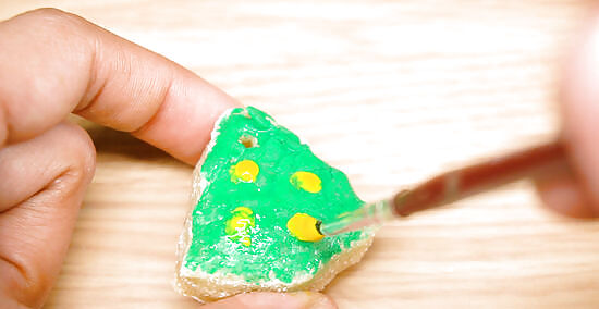 Paint ornaments with poster or tube paints. Decorate until ornaments are satisfactory. Once dry, spray with clear polyurethane on both sides to preserve. These ornaments are not suitable or safe to eat. Do not attempt to eat them.