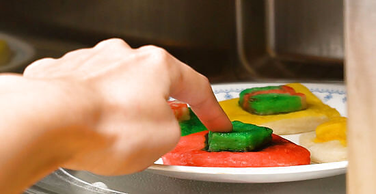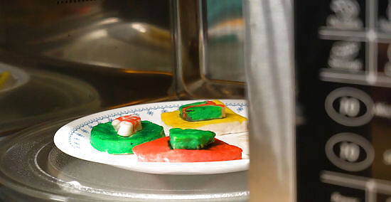 Check the consistency of the dough. It should feel like a moderately dampened sponge. If it is already dried out, take ornaments out of the microwave and allow to cool.