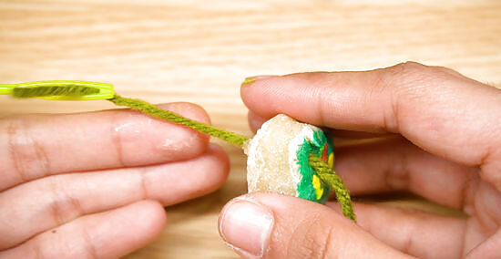 Yarn can be used to make hair or smiles on ornaments. Lightly wet the yarn before pressing it into ornaments: This will help you control its design as well as keep it from browning in either the oven or the microwave.