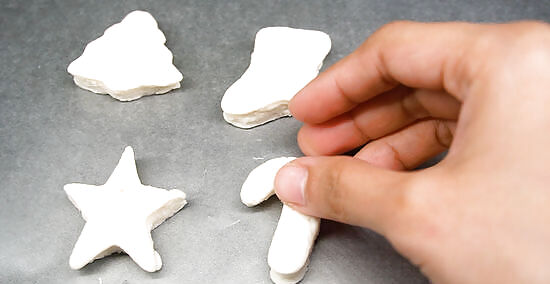 Cut out shapes with cookie cutters. Reindeer, elves, stars, snowflakes, Christmas trees, birds, or angels are all great ideas of ornament shapes. Alternately, let the kids design their own shapes. These ornaments won't have the clean, articulated lines of a cookie cutter, but they'll be one-of-a-kind, and entirely their own!