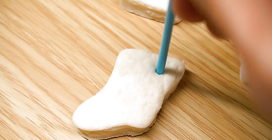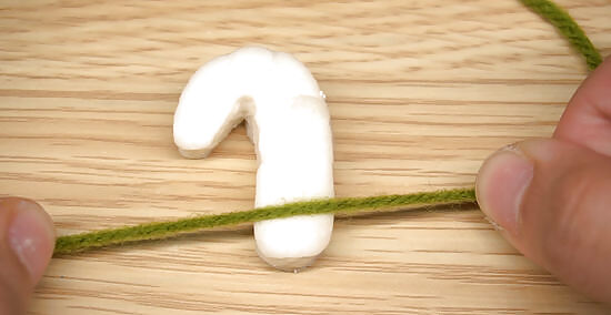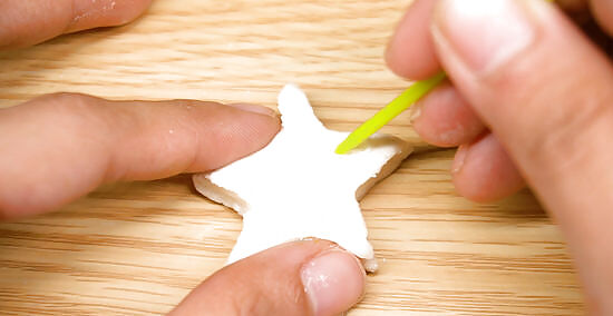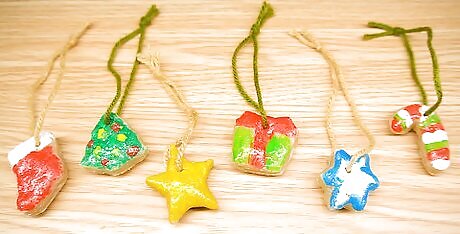 Once dried, string a thread through the hole on the top of the ornaments. Alternately, use ribbon or thread to hang.