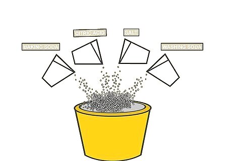 Mix together your washing soda, baking soda, citric acid, and salt. Pour 2 cups (500 g) of washing soda into a big bowl. Add 1 cup (180 g) of baking soda, 1 cup (300 g) of citric acid, and 1 cup (300 g) of kosher salt.