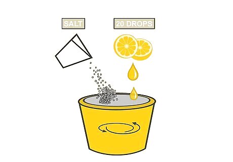 Add 1/2 cup (150 g) of salt and 15 to 20 drops of lemon essential oil. Give all of your ingredients a quick stir at this point. The salt will help soften hard water, while the lemon essential oil will help eliminate bacteria. It will also give your tabs a fresh scent. Try to use kosher salt, if you can. If you cannot find any, use sea salt instead.