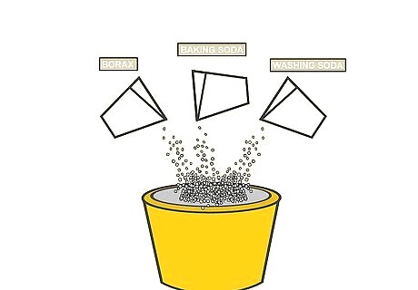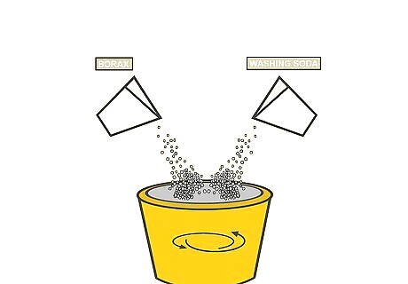 Combine equal amounts of washing soda and borax. You will need 2 cups (500 g) of washing soda and 2 cups (818 g) of borax. The washing soda will help eliminate grease, while the borax will help disinfect the dishes. If you cannot find washing soda, you can try using baking soda.