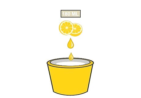 Add 3/4 cup (180 mL) of lemon juice. This will help get those dishes clean as well as eliminate bacteria. It will also give your dishes a fresh scent. The lemon juice will cause the ingredients to fizz up, so wait for the fizz to die down. If you do not have that much lemon juice, use three packets of unsweetened lemonade drink mix and 1 cup (240mL) of water.