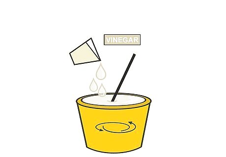 Stir in 1/2 cup (120 mL) of white vinegar. The vinegar will cause the mixture to fizz, which is normal. Wait for the mixture to stop fizzing, then give it a stir. It should become damp and clumpy, like wet sand. White vinegar will help disinfect your dishes.