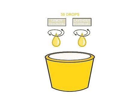 Stir in 30 drops each of lemon essential oil and lavender essential oil. The lemon essential oil has antibacterial and disinfecting properties. The lavender essential oil will also lend your tabs extra disinfecting power. Keep stirring until the oils are evenly distributed throughout the mixture. If you cannot find lavender essential oil, or do not like the smell, use tea tree essential oil instead. Make sure that you use pure essential oil and not fragrance oil used in soap or candle making.