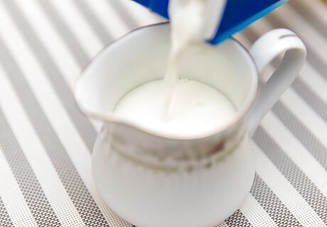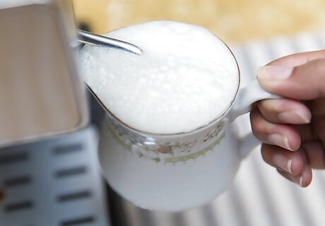 Pour 6 to 8 ounces of cold milk in a pitcher, depending on the desired size of the cappuccino. Keep in mind that the volume of the milk will increase with steaming.