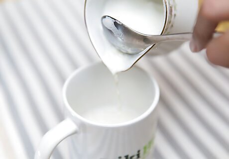 Pour about enough steamed milk into the cup to fill it halfway, using a large spoon to hold back the froth.