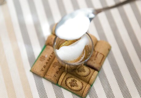 Use a small spoon to scoop some froth onto the espresso shot.
