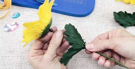 Choose a silk flower that complements your flip flops. The flower will be the main things that draws the eye on your flip flops. Choose a flower that complements the color of your shoes or even matches it. Choose a pink flower for red flip flops, a purple flower for blue flip flops, or a white flower for black flip flops. Get creative with your color combinations! You can find fake flowers at most craft supply stores.