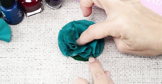 Press the flower onto the hot glue for 10 seconds. Line up the center of the flower with the hot glue. Press the flower gently onto the glue and hold it for about 10 seconds. Make sure the glue bonds with the flower before you let go.