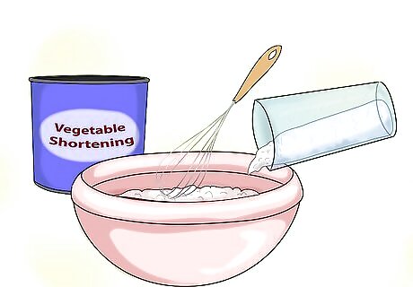 Cream the shortening and sugar (not the confectioners sugar, that will be used for the frosting, later on).
