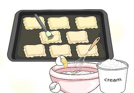 Place tarts on a greased cookie sheet and brush with egg yolk&cream mixture.