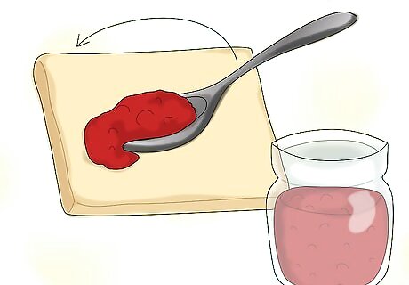 Spread about 1 tablespoon (15 ml) of preserve over 1/2 rectangle. Fold dough over preserve and trim edges.