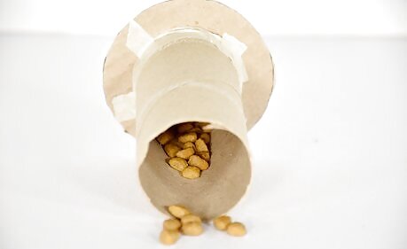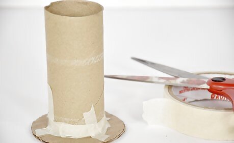 Tape one circle to the end of the tube. Using a sturdy masking tape, attach the cardboard circle to one end of the tube as shown. You'll need to leave the other end open to add treats. Apply the tape liberally to make sure it doesn't come off right away—your cat will enjoy the toy more if they are able to play with it longer before getting the treats inside.