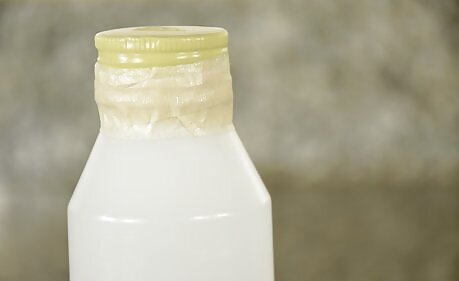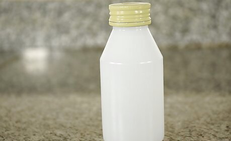Find an empty medicine bottle. Remove any labels from the bottle by soaking them in hot water and then scrubbing or using products like Goo Gone. Once the labels are removed, clean the inside of the bottle with soap and water to remove any powdery residue that may have accumulated.