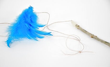 Cut a length of string or fishing line. Fishing line is usually the best choice for making feather toys because it's easy to work with and very strong. Fishing line has the added benefit of being hard to see, causing your kitten to focus more on the feathered end of the toy and avoid getting tangled up in the line. If you don't have fishing line, any thin, sturdy string will do.