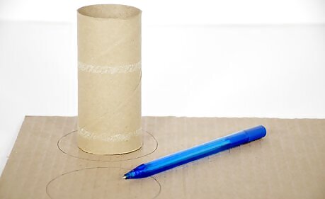 Draw a circle around the tubes on a piece of cardboard. The circles will need to be a little larger in diameter than the tubes themselves. Place your pen or marker about half an inch out from the edge of the tube and draw a consistent circle all the way around it. Making the circle larger will make it easier to attach to the end of the tube. If you prefer, you can use your first circle as a template for making your second. Simply cut the first circle out and use it as a stencil to draw another.